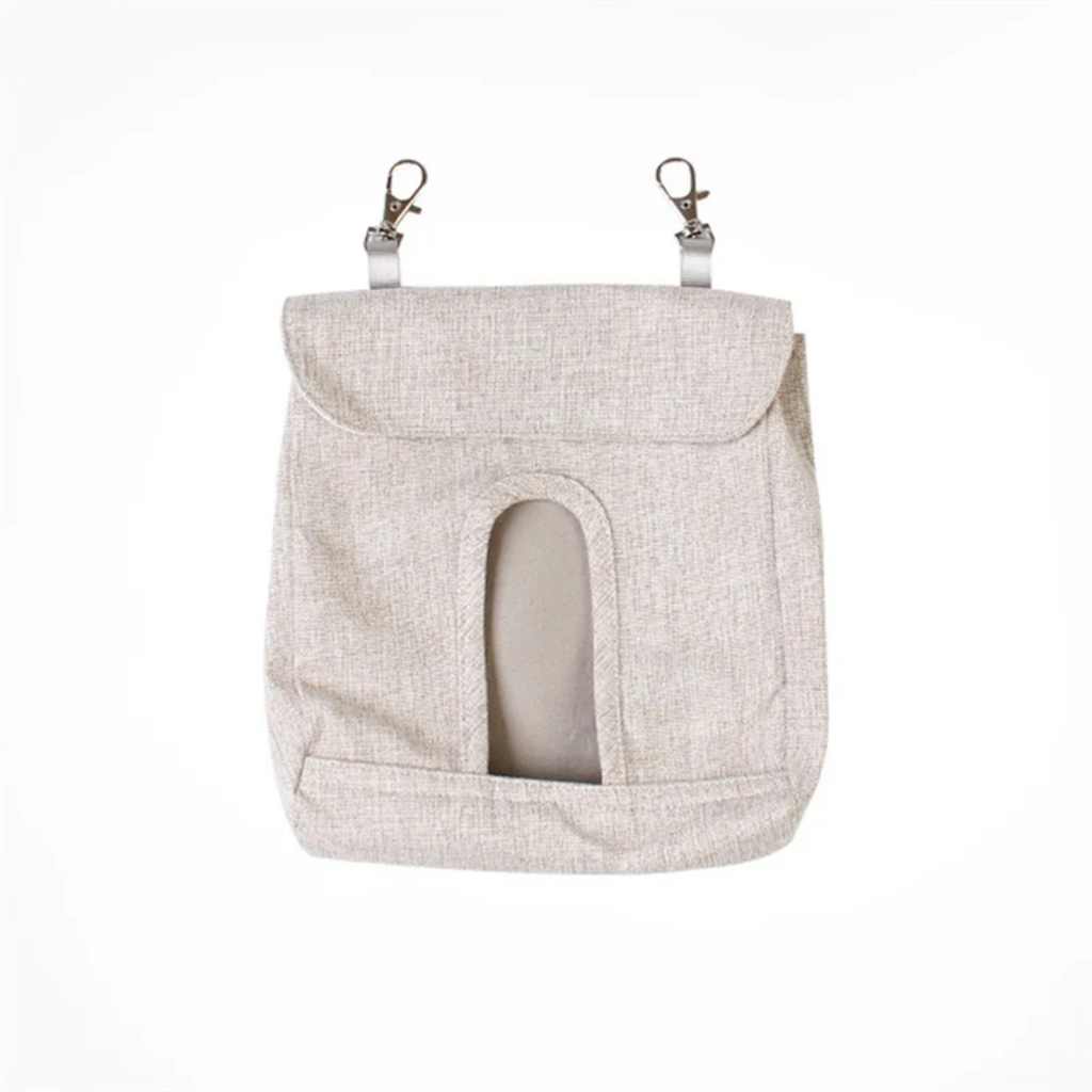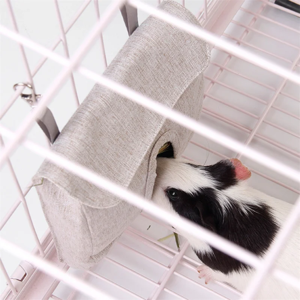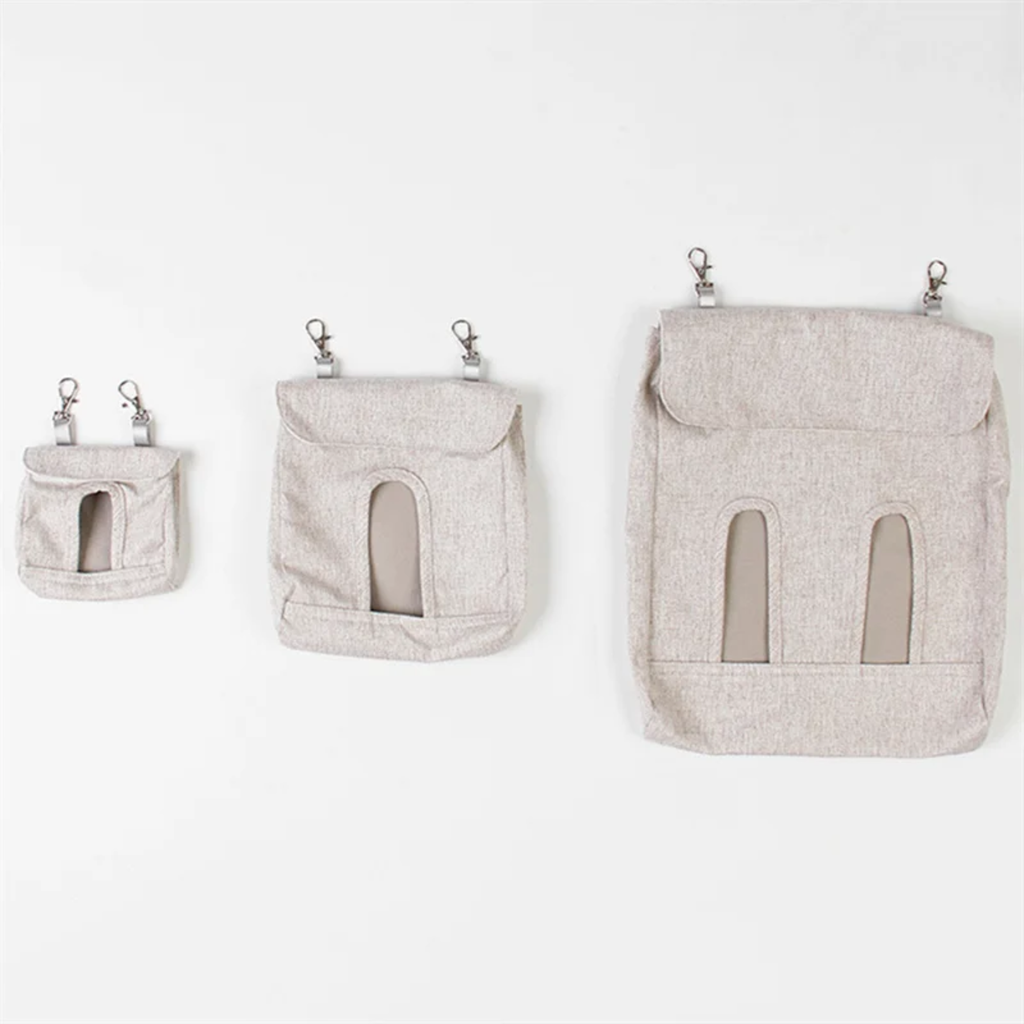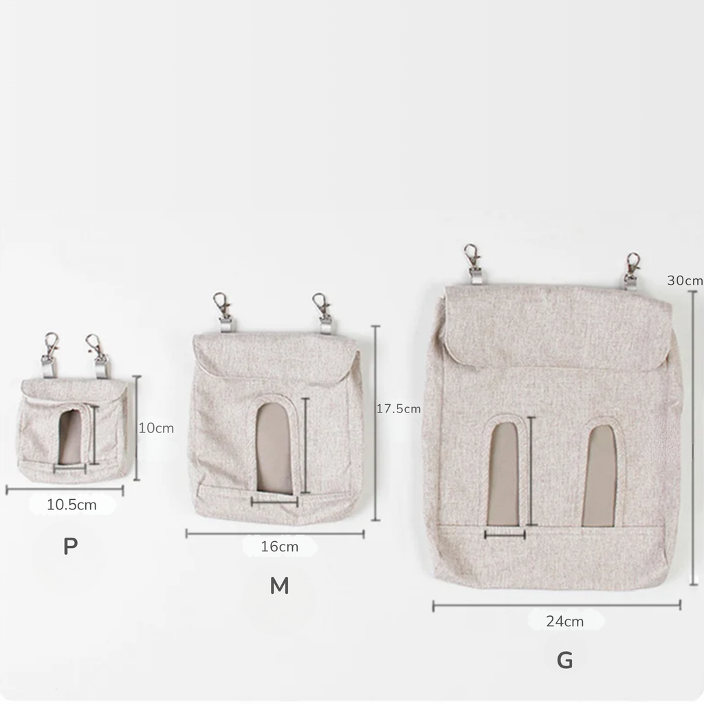 O design suspenso e portátil permite que você fixe a bolsa em gaiolas, cercados ou suportes, garantindo que o pet tenha acesso contínuo à comida sem desperdício. Fabricada em material durável e resistente, ela suporta o uso diário de forma confiável, sendo resistente a mordidas, puxões e movimentação constante do pet.